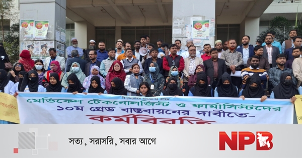 বুধবার হাসপাতাল চত্বরে অবস্থান নিয়ে টেকনোলজিস্ট ও ফার্মাসিস্টরা বেতন গ্রেড বৈষম্য দূরীকরণ এবং দ্রুত ১০ম গ্রেড বাস্তবায়নের দাবি জানান। তারা বলেন, দীর্ঘদিন ধরে দাবি জানিয়ে আসলেও এখনো তা কার্যকর না হওয়ায় পেশাগত উন্নতি ও ন্যায্য প্রাপ্তি থেকে বঞ্চিত হচ্ছেন তারা।
