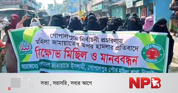 এদিকে নির্বাচনী প্রচারণায় বাধা ও অকথ্য ভাষায় গালিগালাজের প্রতিবাদে মঙ্গলবার (২৭ জানুয়ারি) সকালে বিক্ষোভ মিছিল করেছে জামায়াতে ইসলামী গোপালপুর পৌর মহিলা শাখার নেতাকর্মীরা।