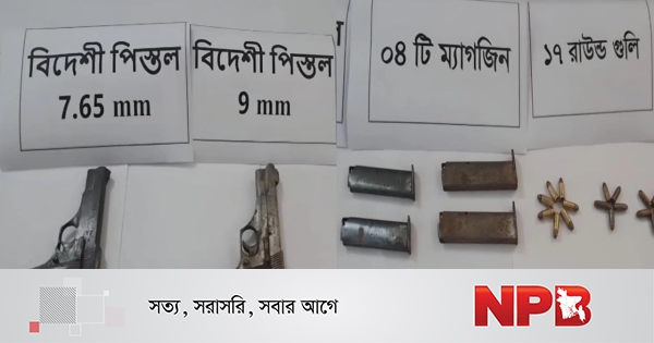 ২টি বিদেশী পিস্তলসহ ১৭ রাউন্ড তাজা গুলি