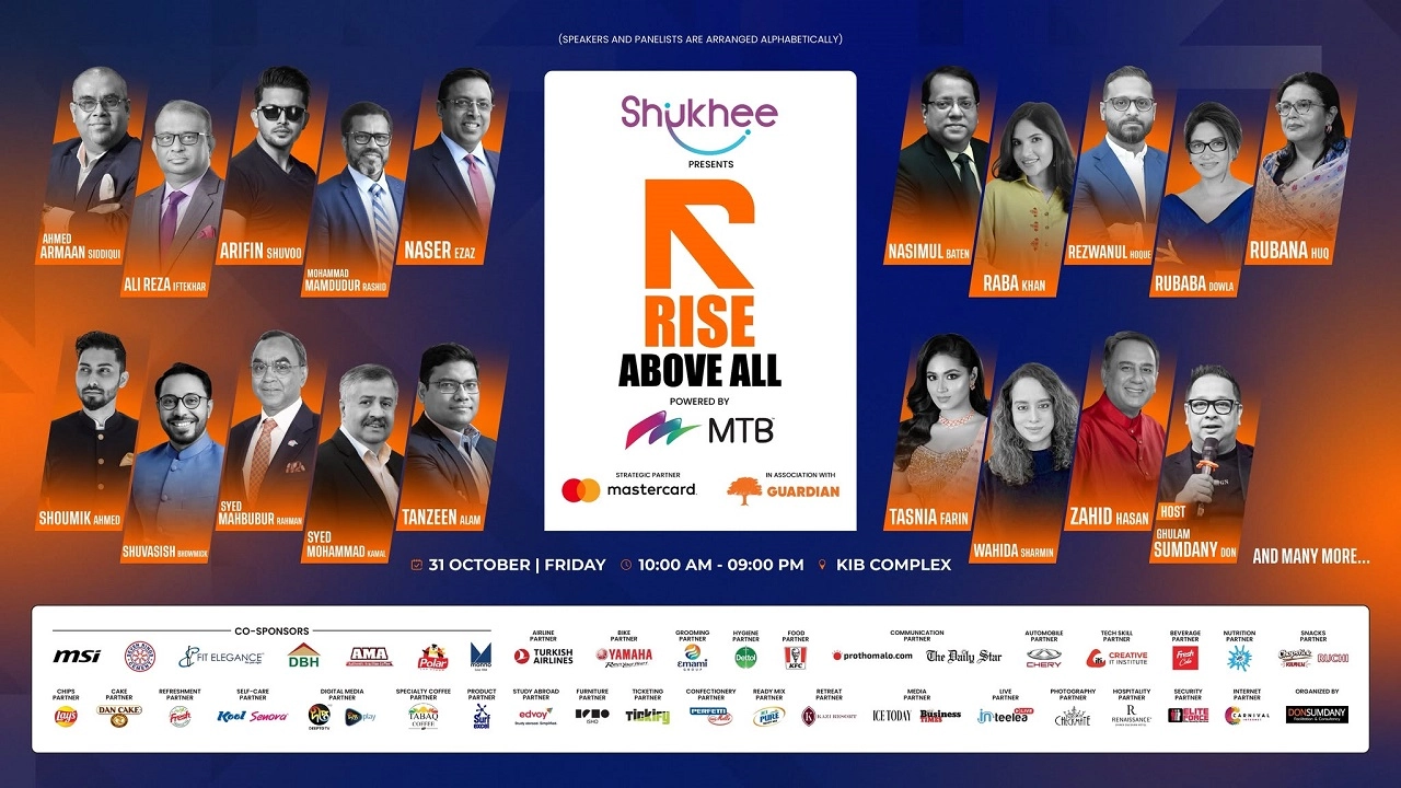 নবমবারের মতো অনুষ্ঠিত হতে যাচ্ছে ‘রাইজ অ্যাবাভ অল’। ডন সামদানি ফ্যাসিলিটেশনের আয়োজনে ঢাকার কৃষিবিদ ইনস্টিটিউটে এ অনুষ্ঠান হবে ৩১ অক্টোবর। শিক্ষার্থী, তরুণ পেশাদার ও নতুন উদ্যোক্তাদের অনুপ্রাণিত করা এবং তাঁদের দক্ষতা বাড়াতে সাহায্য করাই এ আয়োজনের উদ্দেশ্য।