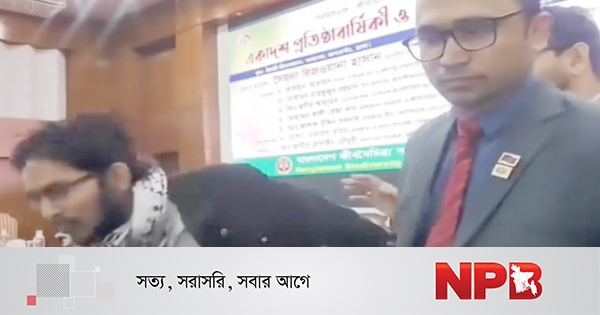 রাজধানীর আগারগাঁওয়ের বন ভবনের একটি অনুষ্ঠানে বক্তব্য চলাকালে মাইক বন্ধ করে দেওয়া ও গালাগালির ঘটনায় বৈষম্যবিরোধী ছাত্র আন্দোলনের সাবেক ‘সমন্বয়ক’ পরিচয়ধারী এক তরুণকে মঞ্চ থেকে ধাক্কা দিয়ে নামিয়ে দিয়েছেন আয়োজকরা।