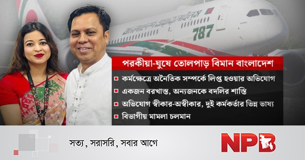 এবার বিমান বাংলাদেশ এয়ারলাইন্সে যুক্ত হয়েছে নতুন বিতর্ক 'কর্মক্ষেত্রে সহকর্মীর সঙ্গে অনৈতিক সম্পর্ক ও পরকীয়া প্রেম'। সংস্থাটির জুনিয়র গ্রাউন্ড সার্ভিস অফিসার (জেজিএসও) ফিরোজ-উজ-জামানের (পি-৩৬৫০৭) সঙ্গে গ্রাউন্ড সার্ভিস এ্যাসিসটেন্ট জান্নাতুল জেনানের (জি-৫৩০০৮) অনৈতিক সম্পর্ক ও পরকীয়া প্রেমের কাহিনী আলোচনার তুঙ্গে।
