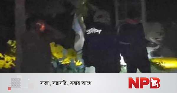 ভিডিও ফুটেজে দেখা যায়, মুখে মাস্ক পরা এক ব্যক্তি ‘জয় বাংলা’ স্লোগান দিতে দিতে আগুন লাগাচ্ছেন। তবে আশেপাশের লোকজন দ্রুত আগুন নিভিয়ে দান। কিশোরগঞ্জ মডেল থানা পুলিশ জানায়, আগুনে কোনো ক্ষয়ক্ষতি হয়নি।