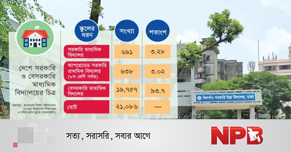বর্তমানে মাধ্যমিক স্তরে শিক্ষার্থী সংখ্যা ৯৪ লাখের বেশি। এর মধ্যে প্রায় ৮৭ লাখ পড়ছে বেসরকারি স্কুলে, আর সরকারি প্রতিষ্ঠানে পড়ছে মাত্র সাড়ে ৫ লাখ শিক্ষার্থী। অর্থাৎ প্রায় ৯৩ শতাংশ শিক্ষার্থীও বেসরকারি প্রতিষ্ঠানে পড়াশোনা করছে।