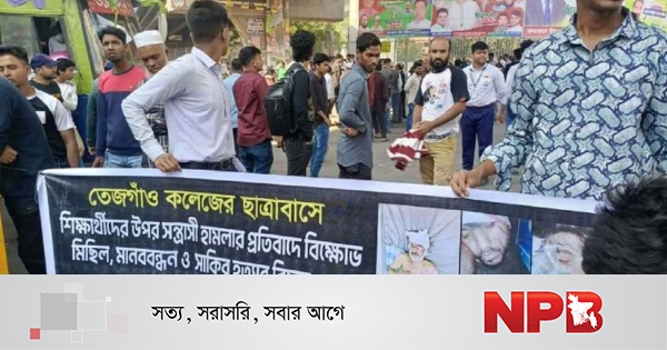 তেজগাঁও কলেজের এক শিক্ষার্থীকে ছাত্রদলের দু গ্রুপের সংঘর্ষে নৃশংসভাবে হ’ত্যা’র ঘটনাকে কেন্দ্র করে বৃহস্পতিবার দুপুরে ফার্মগেট মোড়ে বিক্ষোভে নামে শিক্ষার্থীরা। তারা দ্রুত দোষীদের গ্রেপ্তার ও কঠোর শাস্তির দাবিতে সড়ক অ’ব’রো’ধ করে অবস্থান নেয়।
