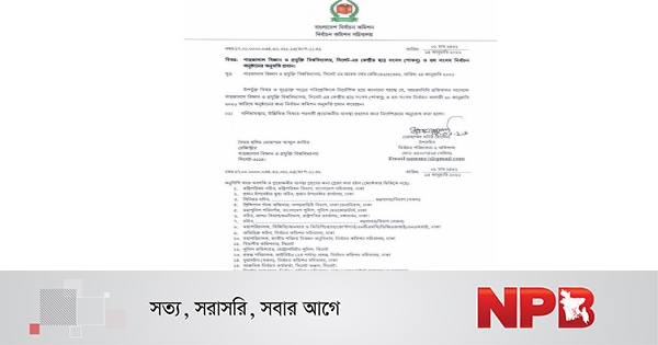 বিজ্ঞপ্তিতে আরও বলা হয়, ‘বর্ণিতাবস্থায়, উল্লিখিত বিষয়ে পরবর্তী প্রয়োজনীয় ব্যবস্থা গ্রহণের জন্য নির্দেশক্রমে অনুরোধ করা হলো।’