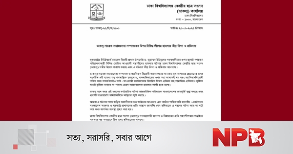 মঙ্গলবার (২৩ সেপ্টেম্বর) দুপুরে ডাকসুর নব নির্বাচিত সাধারণ সম্পাদকের এস এম ফরহাদ স্বাক্ষরিত এক বিজ্ঞপ্তিতে এ প্রতিবাদ জানানো হয়।