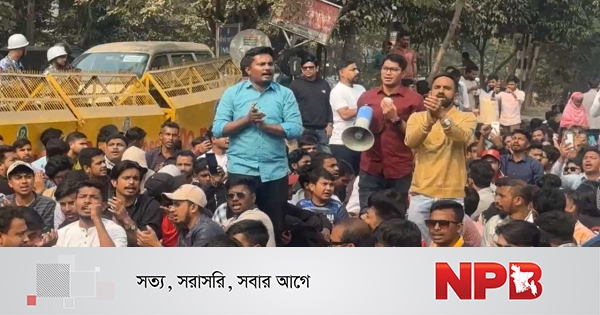 ব্যারিকেডের সামনের সড়ক আটকে অবস্থান নিয়েছেন ছাত্রদলের নেতা-কর্মীরা। সেখানে ছাত্রদলের নেতা-কর্মীরা স্লোগান দিচ্ছেন।