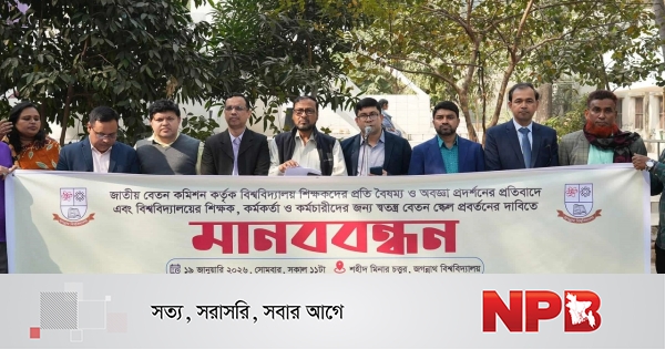 তিনি ঘোষণা দেন, "জগন্নাথ বিশ্ববিদ্যালয় থেকে এ আন্দোলনের সূত্রপাত করে দেশের সকল পাবলিক বিশ্ববিদ্যালয়ে ছড়িয়ে দেওয়া হবে। মানববন্ধন থেকে জাতীয় বেতন কমিশন কর্তৃক বিশ্ববিদ্যালয়ের প্রতি প্রদর্শিত বৈষম্যমূলক আচরণ ও অবজ্ঞার তীব্র নিন্দা জানানো হয় এবং অবিলম্বে সাব-কমিটির ৩৩টি প্রস্তাবের আলোকে বিশ্ববিদ্যালয়ের শিক্ষক, কর্মকর্তা ও কর্মচারীদের ন্যায্য সম্মান ও অধিকার নিশ্চিত করার দাবি জানানো হয়। অন্যথায় সকল পাবলিক বিশ্ববিদ্যালয় সম্মিলিতভাবে কঠোর কর্মসূচি ঘোষণা করবে বলেও হুঁশিয়ারি দেওয়া হয়।"
