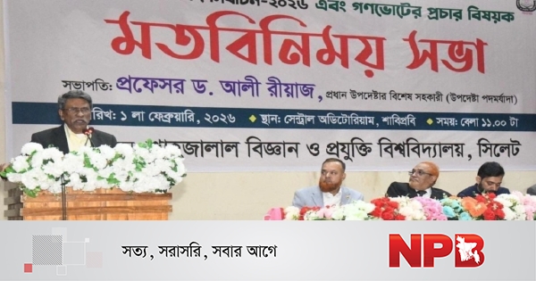 রবিবার (১ ফেব্রুয়ারি) সিলেটে শাহজালাল বিজ্ঞান ও প্রযুক্তি বিশ্ববিদ্যালয়ের (শাবিপ্রবি) কেন্দ্রীয় অডিটোরিয়ামে আসন্ন জাতীয় সংসদ নির্বাচন ও গণভোটের প্রচার বিষয়ক এক মতবিনিময় সভায় সভাপতির বক্তব্যে তিনি এসব কথা বলেন।