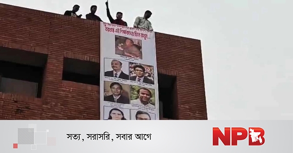 জাহাঙ্গীরনগর বিশ্ববিদ্যালয়ের (জাবি) নতুন প্রশাসনিক ভবনের দেওয়ালে জুলাই হামলার মদদদাতা ও উসকানিদাতা শিক্ষকদের দ্রুত বিচার চেয়ে ছবি সাঁটিয়ে দিয়েছে জাহাঙ্গীরনগর বিশ্ববিদ্যালয় কেন্দ্রীয় শিক্ষার্থী সংসদ (জাকসু) নেতারা।