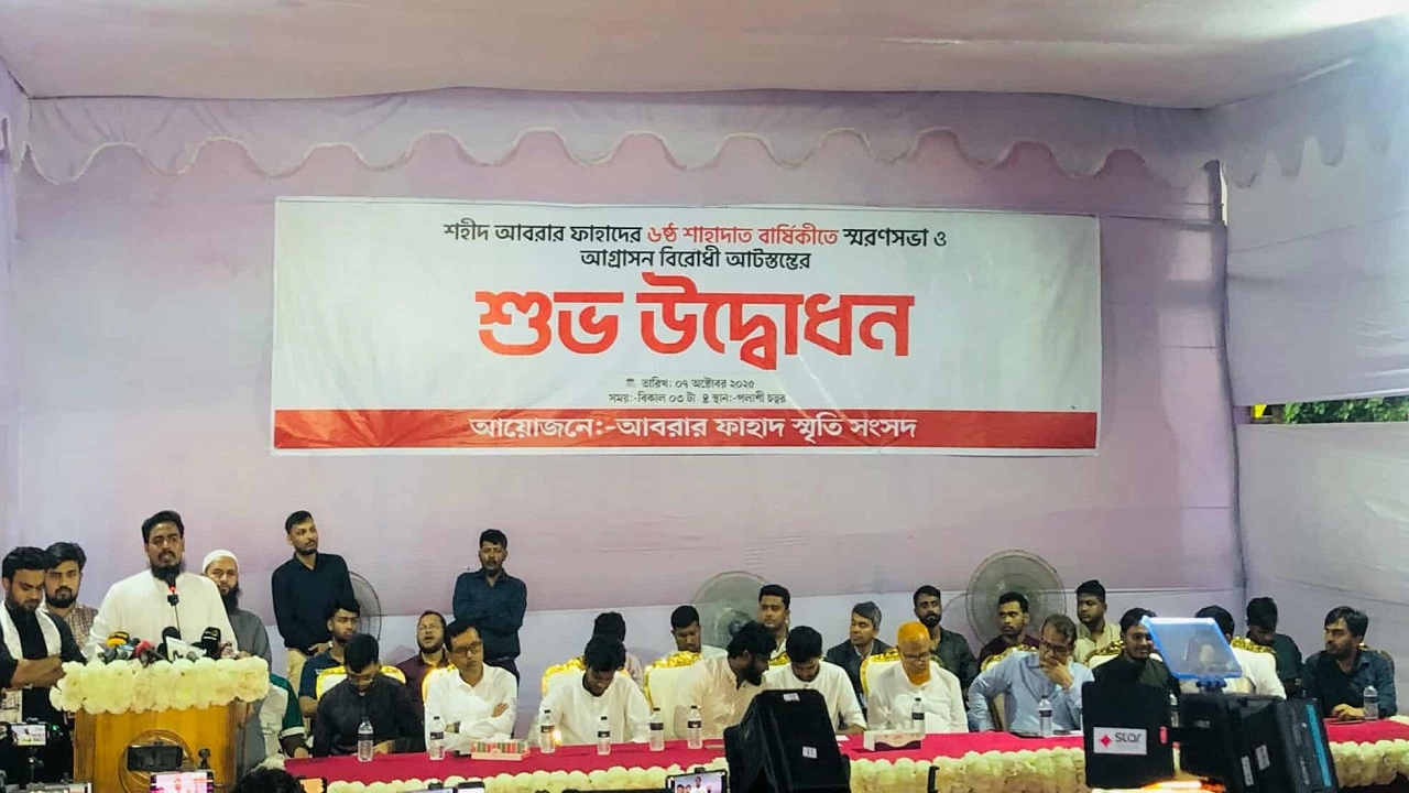 মঙ্গলবার (৭ অক্টোবর) বিকালে আবরার ফাহাদ স্মৃতি সংসদ কর্তৃক আয়োজিত আগ্রাসন বিরোধী আটস্তম্ভের উদ্বোধন পরবর্তী শহীদ আবরার ফাহাদের ৬ষ্ঠ শাহাদাত বার্ষিকীর স্মরণসভায় এ কথা বলেন তিনি।