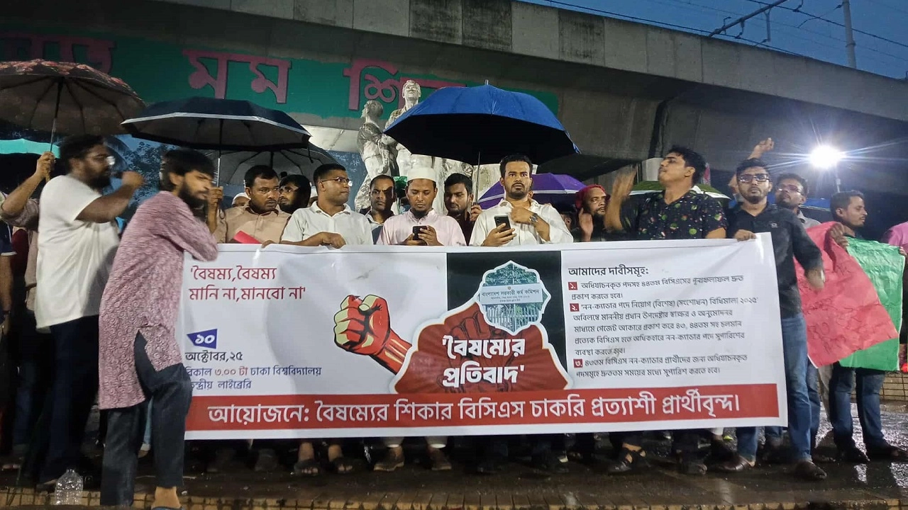 বাংলাদেশ সিভিল সার্ভিসে (বিসিএস) যোগদানের জন্য বাংলাদেশ সরকারি কর্মকমিশন (পিএসসি) কর্তৃক অনুষ্ঠিত ৪৩ ও ৪৪ তম বিসিএস পরীক্ষায় অংশগ্রহণ করে বৈষম্যের শিকার হওয়ার অভিযোগ এনে চাকরি প্রত্যাশী প্রার্থীরা মানববন্ধন করেছে।