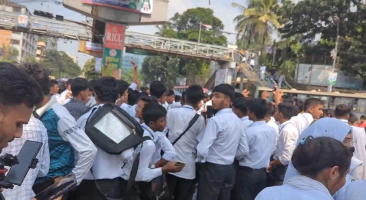 ঢাকা কলেজের উচ্চমাধ্যমিক শিক্ষার্থীরা মঙ্গলবার (১৪ অক্টোবর) সকালে রাজধানীর সায়েন্সল্যাব মোড় অবরোধ করে রাখে।