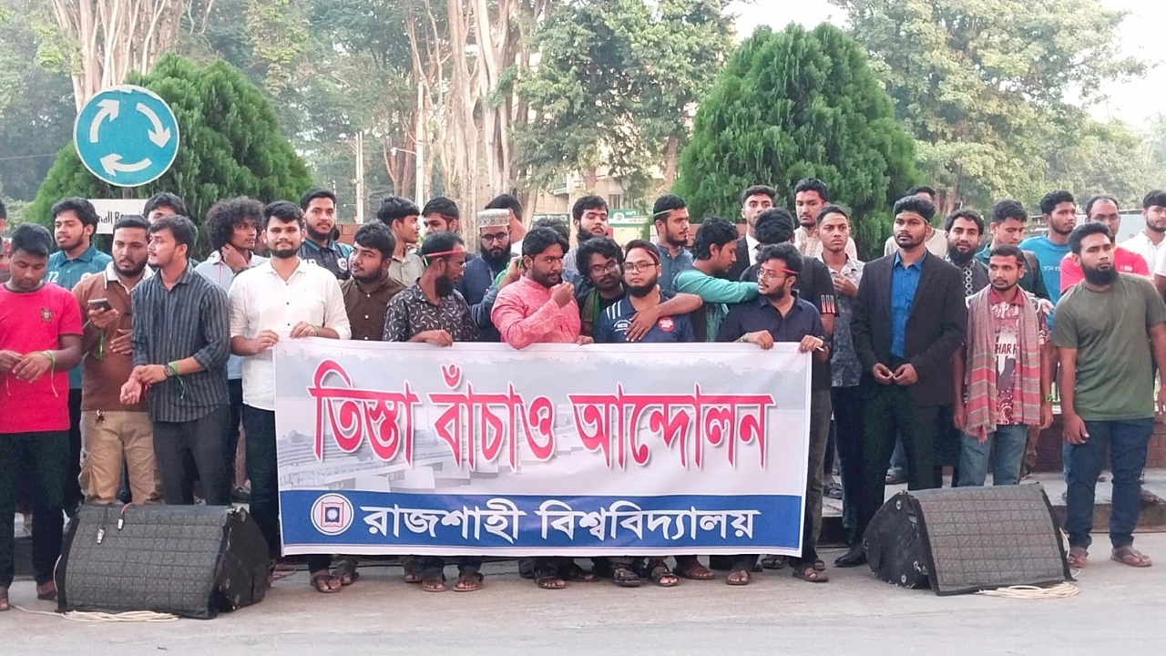 তিস্তা প্রকল্প বাস্তবায়ন ও ন্যায্য পানি বণ্টনের দাবিতে রাজশাহী বিশ্ববিদ্যালয়ে (রাবি) গণজমায়েত ও সাংস্কৃতিক আন্দোলন অনুষ্ঠিত হয়েছে।