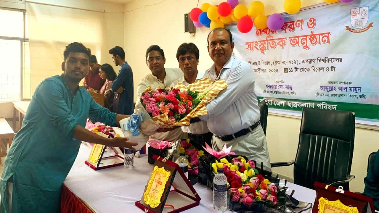 জগন্নাথ বিশ্ববিদ্যালয়ে (জবি) কুষ্টিয়া জেলা থেকে ২০২৪-২৫ শিক্ষাবর্ষে ভর্তি হওয়া নবীন শিক্ষার্থীদের বরণে নবীনবরণ ও প্রবীণ সংবর্ধনা অনুষ্ঠিত হয়েছে।