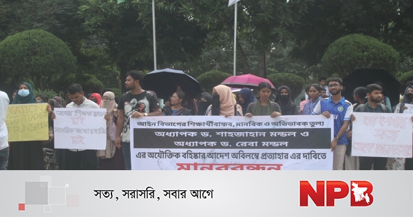 ক্যাম্পাসে জুলাই অভ্যুত্থান বিরোধী ভূমিকা গ্রহন করে এবং গণহত্যার পক্ষে পক্ষপাতিত্ব করার অভিযোগে সাময়িকভাবে বরখাস্ত হওয়া ইবির (ইবি) আইন বিভাগের দুই শিক্ষকের পক্ষে মানববন্ধন করেছেন বিভাগের শিক্ষার্থীদের একাংশ। বহিষ্কৃত শিক্ষকেরা হলেন অধ্যাপক ড. শাহাজাহান মন্ডল ও অধ্যাপক ড. রেবা মন্ডল।