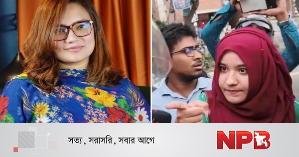 মানবতাবিরোধী অপরাধের মামলায় শেখ হাসিনার বিরুদ্ধে রায় ঘোষণার দিন ধানমণ্ডিতে পুলিশের সঙ্গে উত্তপ্ত বাকবিতণ্ডায় জড়ান ঢাকা বিশ্ববিদ্যালয় কেন্দ্রীয় ছাত্র সংসদের (ডাকসু) কার্যনির্বাহী সদস্য উম্মে উসওয়াতুন রাফিয়া।