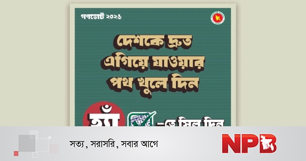 ফটোকার্ডগুলোতে ‘গণভোট ২০২৬—দেশকে দ্রুত এগিয়ে নেওয়ার সুযোগ, হ্যাঁ ভোট দিন’—এমন বার্তা তুলে ধরা হচ্ছে।