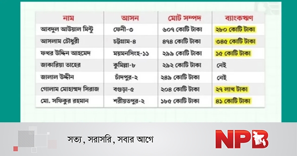 ধনী প্রার্থীদের তালিকার শীর্ষে রয়েছেন ফেনী-৩ (সোনাগাজী ও দাগনভূঞা) আসনে বিএনপির প্রার্থী আবদুল আউয়াল মিন্টু। নির্বাচনী হলফনামা অনুযায়ী, তাঁর ও তাঁর স্ত্রী নাসরিন ফাতেমা আউয়ালের নামে থাকা স্থাবর ও অস্থাবর সম্পদের বর্তমান মূল্য ৬০৭ কোটি টাকা।