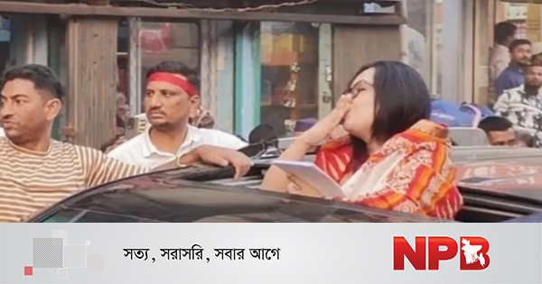 ব্রাহ্মণবাড়িয়া-২ (সরাইল, আশুগঞ্জ ও বিজয়নগরের একাংশ) আসনের স্বতন্ত্র প্রার্থী ব্যারিস্টার রুমিন ফারহানা শেষ গণমিছিলে অংশ নিয়ে ভোটারদের উদ্দেশে উড়ন্ত চুমু ছুড়ে দিয়েছেন।