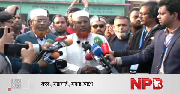 ভোট প্রদান শেষে কেন্দ্র প্রাঙ্গণে উপস্থিত সাংবাদিকদের সঙ্গে কথা বলেন গোলাম পরওয়ার।