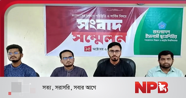সম্প্রতি বিশ্ববিদ্যালয়ের ইউনিভার্সিটি সেন্টার (ইউসি) ভবনে এক সংবাদ সম্মেলনে ছাত্রশিবিরের বিশ্ববিদ্যালয় শাখার সেক্রেটারি মাসুদ রানা (তুহিন) এ দাবি জানান।