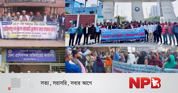 বৈষম্যমুক্ত নবম পে স্কেলের গেজেট প্রকাশ ও ১ জানুয়ারি থেকে বাস্তবায়নের দাবিতে সারা দেশের সরকারি, আধা সরকারি ও স্বায়ত্তশাসিত অফিসগুলোতে কর্মচারীরা দুই ঘণ্টার অবস্থান কর্মসূচি ও বিক্ষোভ সমাবেশ করেছেন। আজ রবিবার (১ ফেব্রুয়ারি) সকাল ৯টা থেকে বেলা ১১টা পর্যন্ত এ কর্মসূচি পালন করা হয়েছে। সোম ও মঙ্গলবারও একই কর্মসূচি পালন করা হবে।