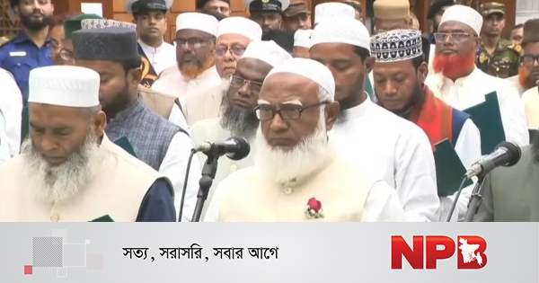 ‘এই ফর্মটি তৃতীয় তফসিলে আছে, সাদাটা। এই রকম তখন একটা ফর্ম সংবিধানের তৃতীয় তফসিলে আসবে। সেগুলো সাংবিধানিকভাবে জাতীয় সংসদে গৃহীত হওয়ার পরে তখন জাতীয় সংবিধান সংস্কার পরিষদের সদস্যদের শপথ নেওয়ার বিধান করা যাবে বিধায় আমরা এখন সাংবিধানিকভাবে এই পর্যন্ত আমরা এসেছি।’