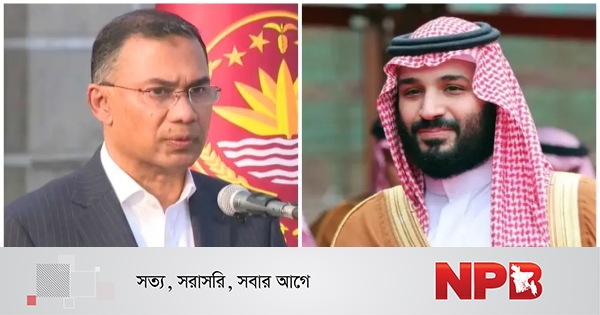 প্রতিবেদনে বলা হয়, বাংলাদেশের প্রধানমন্ত্রী হিসেবে শপথ নেওয়ার পর তারেক রহমানকে অভিনন্দন জানিয়েছেন সৌদি যুবরাজ মোহাম্মদ বিন সালমান। তিনি তারেক রহমানকে তার নেতৃত্বে নতুন সরকার গঠনের জন্যও অভিনন্দন জানান। সৌদি যুবরাজ বাংলাদেশের জনগণের অব্যাহত অগ্রগতি ও সমৃদ্ধি কামনা করেন।