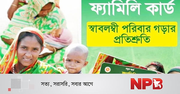 দরিদ্র ও নিম্ন-মধ্যবিত্ত পরিবারকে মূল্যস্ফীতির চাপ থেকে স্বস্তি দিতে ‘ফ্যামিলি কার্ড’ কর্মসূচি চালুর উদ্যোগ নেওয়া হয়েছে। ফ্যামিলি কার্ডের পাইলট প্রকল্প শুরু হতে যাচ্ছে দ্রুতই। এই কার্ডের মাধ্যমে নির্বাচিত পরিবারগুলোকে নিয়মিত নগদ সহায়তা দেবে বর্তমান সরকার।