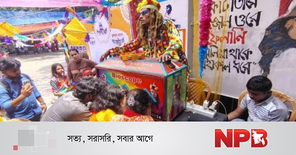 মঙ্গলবার (১৪ এপ্রিল) বাংলা নববর্ষ ১৪৩৩ উপলক্ষে ডাকসু ভবনের সামনে সকাল থেকে বায়োস্কোপে জুলাই আন্দোলনের বিভিন্ন ছবি প্রদর্শন করা হয়।