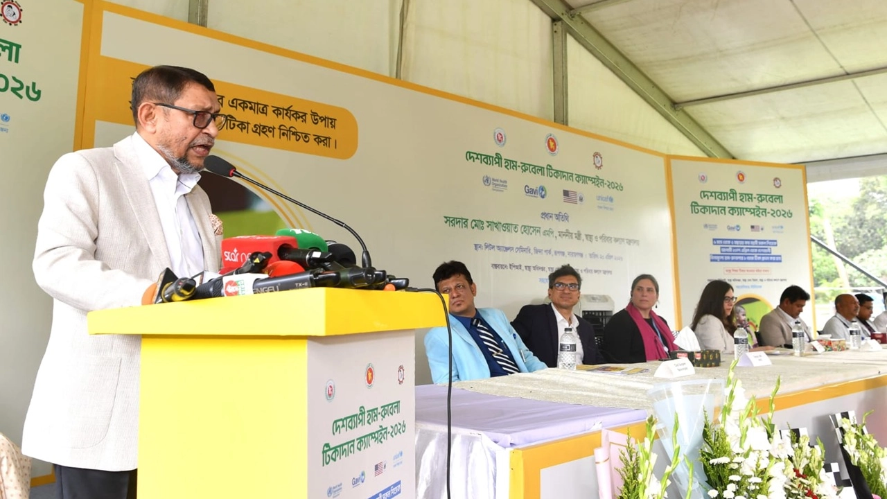 সোমবার (২০ এপ্রিল) সকালে নারায়ণগঞ্জের রূপগঞ্জে জিন্দাপার্ক সংলগ্ন লিটল এঞ্জেলস সেমিনারীতে আয়োজিত "দেশব্যাপী হাম-রুবেলা টিকাদান ক্যাম্পেইন-২০২৬" এর উদ্বোধন অনুষ্ঠানে প্রধান অতিথির বক্তব্যে এসব কথা বলেন।