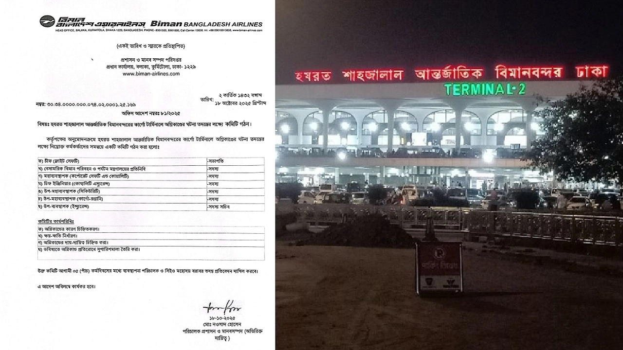 ঢাকার হযরত শাহজালাল আন্তর্জাতিক বিমানবন্দরে পুনরায় বিমান চলাচল শুরু হয়েছে। এবং অগ্নিকাণ্ডের ঘটনা তদন্তে ছয় সদস্যের কমিটি গঠন করেছে বিমান বাংলাদেশ এয়ারলাইন্স।
