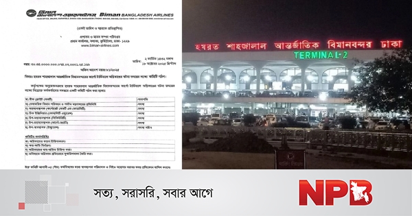 শনিবার (১৮ অক্টোবর) বিমান বাংলাদেশ এয়ারলাইন্সের প্রশাসন ও মানব সম্পদ পরিদপ্তরের পরিচালক (প্রশাসন ও মানবসম্পদ) মো. নওসাদ হোসেন স্বাক্ষরিত এক বিজ্ঞপ্তিতে এই তথ্য জানানো হয়েছে।