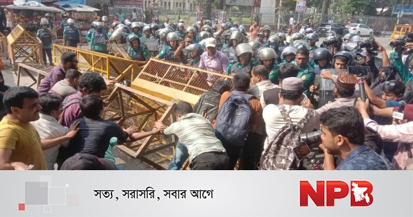 শাহবাগ থানার সামনে পৌঁছালে পুলিশ সড়কে ব্যারিকেড স্থাপন করে মিছিল থামিয়ে দেয়। এ সময় কিছুক্ষণের জন্য আন্দোলনকারীদের সঙ্গে পুলিশের ধাক্কাধাক্কির ঘটনাও ঘটে।