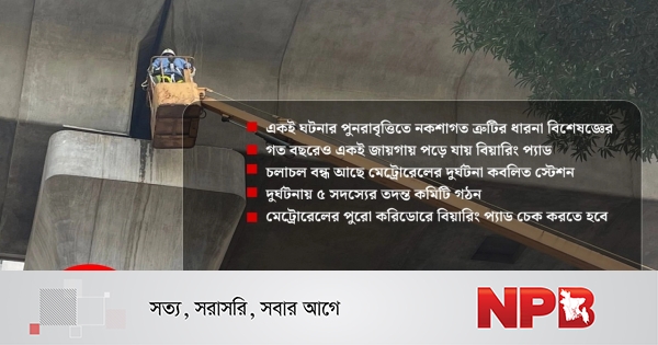 বিশেষজ্ঞরা বলছেন, বিয়ারিং প্যাড পড়ে যাওয়ার ঘটনায় দায় আছে মেট্রোরেল কর্তৃপক্ষের।