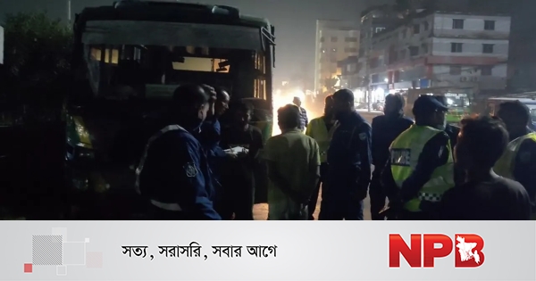 ঢাকা–নারায়ণগঞ্জ লিংক রোডে দুর্বৃত্তের ছোড়া আগুনে পুড়তে থাকা একটি বাসের ভেতর থেকে প্রাণে বেঁচেছেন চালক ও হেলপার।