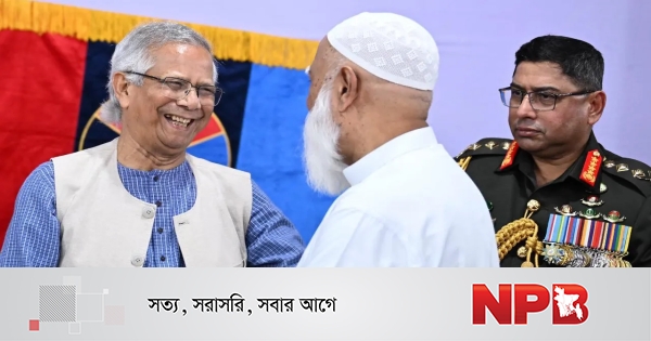 সশস্ত্র বাহিনী দিবস উপলক্ষে রাজধানীর সেনাকুঞ্জে আয়োজিত অনুষ্ঠানে প্রধান উপদেষ্টা প্রফেসর মুহাম্মদ ইউনূস ও জামায়াতে ইসলামীর আমির ডা. শফিকুর রহমান একে অপরের সঙ্গে শুভেচ্ছা বিনিময় করেন।