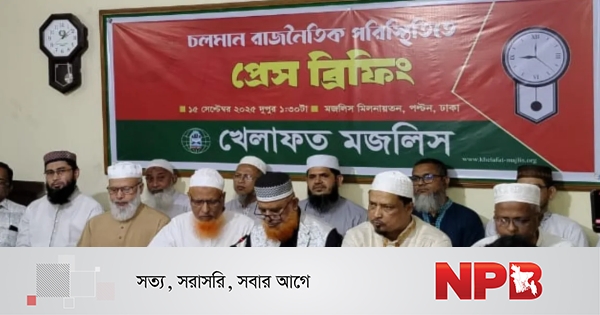 সোমবার ( ১৫ সেপ্টেম্বর) দুপুর ২ টায় পল্টন কালভার্ট রোডস্থ কেন্দ্রীয় কার্যালয়ে অনুষ্ঠিত প্রেস ব্র্রিফিংয়ে উপরোক্ত দাবি ও কর্মসূচি ঘোষণা করেন খেলাফত মজলিস মহাসচিব ড. আহমদ আবদুল কাদের।
