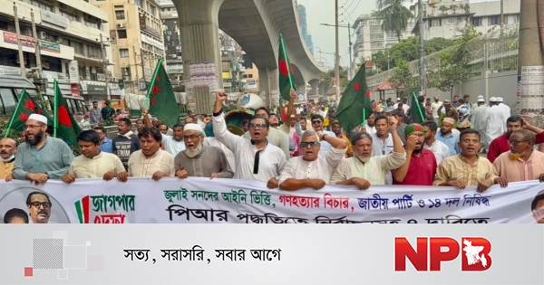 জাতীয় গণতান্ত্রিক পার্টি (জাগপা) সহ-সভাপতি ও দলীয় মুখপাত্র রাশেদ প্রধান বলেছেন, আগামী জাতীয় নির্বাচন জুলাই সনদের আলোকে হতে হবে। বাংলার মাটিতে আর নতুন কোন স্বৈরাচার ফ্যাসিজম দেখতে চাই না। হিন্দুস্তানী আপা জাপা ১৪ দল নিষিদ্ধ করে জনগণের দাবি পিআর পদ্ধতিতে জাতীয় নির্বাচন করতে হবে।