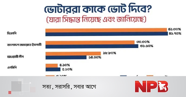 এ জরিপে ভোট দেয়ার সিদ্ধান্ত নিয়েছেন, এমন অংশগ্রহণকারীদের মধ্যে বিএনপি জনপ্রিয়তার শীর্ষে রয়েছে, যা ৪১.৩০ শতাংশ।