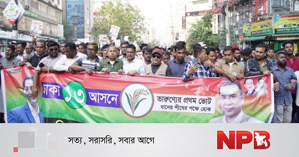 ঢাকা-১৩ আসনে ধানের শীষের সমর্থনে যুবদলের উদ্যোগে গণমিছিল অনুষ্ঠিত হয়েছে।