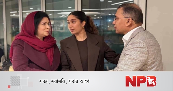 লন্ডনের হিথ্রো বিমানবন্দরে তারেক রহমানের সঙ্গে স্ত্রী জুবাইদা রহমান ও মেয়ে জাইমা রহমান