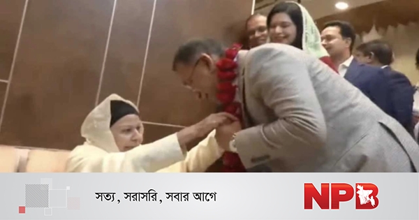 এসময় ফুলের মালা দিয়ে জুবাইদা রহমানের মা তারেক রহমানকে বরন করেন নেন।