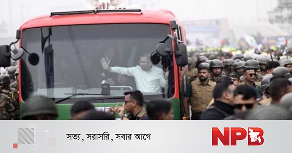 বৃহস্পতিবার (২৫ ডিসেম্বর) দুপুর ২টায় জুলাই ৩৬ এক্সপ্রেসওয়ে’তে তার গাড়িবহর প্রবেশ করে। যৌথবাহিনীর কড়া নিরাপত্তায় ধীরে ধীরে এগোচ্ছে তার গাড়িবহর।