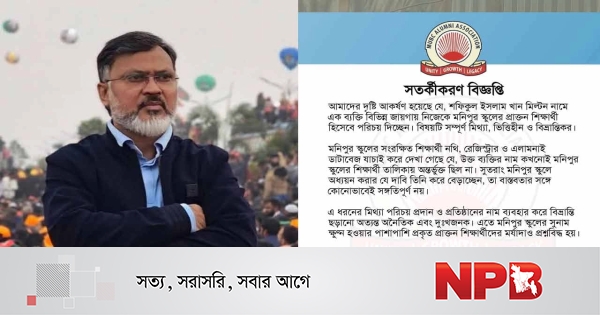 সংগঠনটির পক্ষ থেকে জানানো হয়, শফিকুল ইসলাম খান মিল্টন বিভিন্ন সভা-সমাবেশ ও সামাজিক যোগাযোগ মাধ্যমে নিজেকে মনিপুর স্কুলের প্রাক্তন শিক্ষার্থী হিসেবে পরিচয় দিয়ে আসছেন।