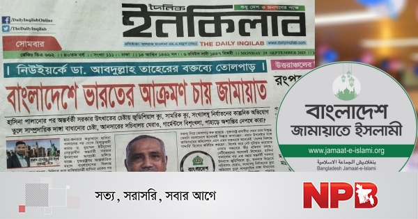 জামায়াতের নায়েবে আমীর, সাবেক এমপি ডা. সৈয়দ আব্দুল্লাহ মোঃ তাহেরের বক্তব্যের অপব্যাখ্যা করে দৈনিক ইনকিলাবে যে মিথ্যা ও মনগড়া রিপোর্ট প্রকাশিত হয়েছে তার নিন্দা ও প্রতিবাদ জানিয়ে বাংলাদেশ জামায়াতে ইসলামী।