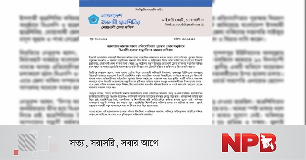 বৃহস্পতিবার (১৬ অক্টোবর) নোয়াখালী জেলা দক্ষিণের সভাপতি সাইফুর রসূল ফুহাদ ও শাখা সেক্রেটারি আরাফাত হোসাইন সিফাত এক যৌথ বিবৃতিতে এ প্রতিবাদ ও বিচার দাবি করেন।
