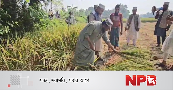 ধান কাটার পর তিনি কৃষকদের বুকে জড়িয়ে ধরে নির্বাচনী লিফলেট তুলে দেন এবং তাদের দোয়া ও ভোট চান।